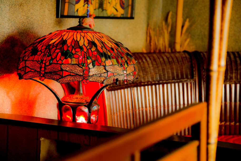 ユニークな店内で丹精込めた菜食料理が味わえる「ナイヤビンギ」。座敷席では足をくずしてくつろげるので、子ども連れや家族の食事会にもぴったりです。生駒山からの絶景を眺めながら、癒しの時間を過ごしてくださいね。