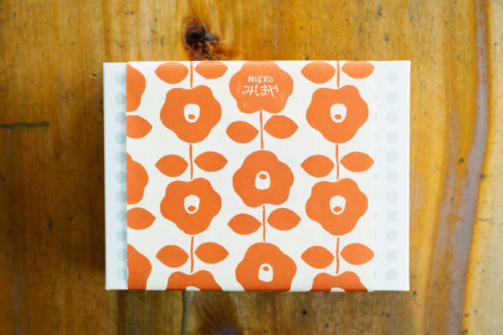 包装紙にも椿がプリントされていて、大正モダンな雰囲気がとってもおしゃれ。実は、この包装紙も暖簾の椿の花も、版画をやっていたという中山さんのお父さんがデザインしたのだとか。