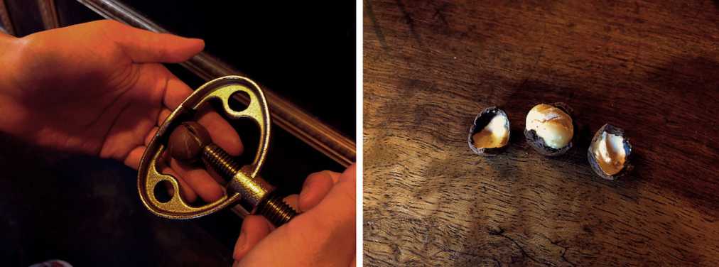 用意されている落花生、マカダミアナッツ、クルミはどれも殻付きなので、自分で割るのが「TICO」の楽しみ。専用の殻割り器でパキっと簡単に殻が剥けますよ。う〜ん、この割れる瞬間はなんだかクセになります!そして、ナッツを食べた後の殻をポイッ床に捨てると…普段やってはいけないことをやっている気分でなんだか気持ちいい!