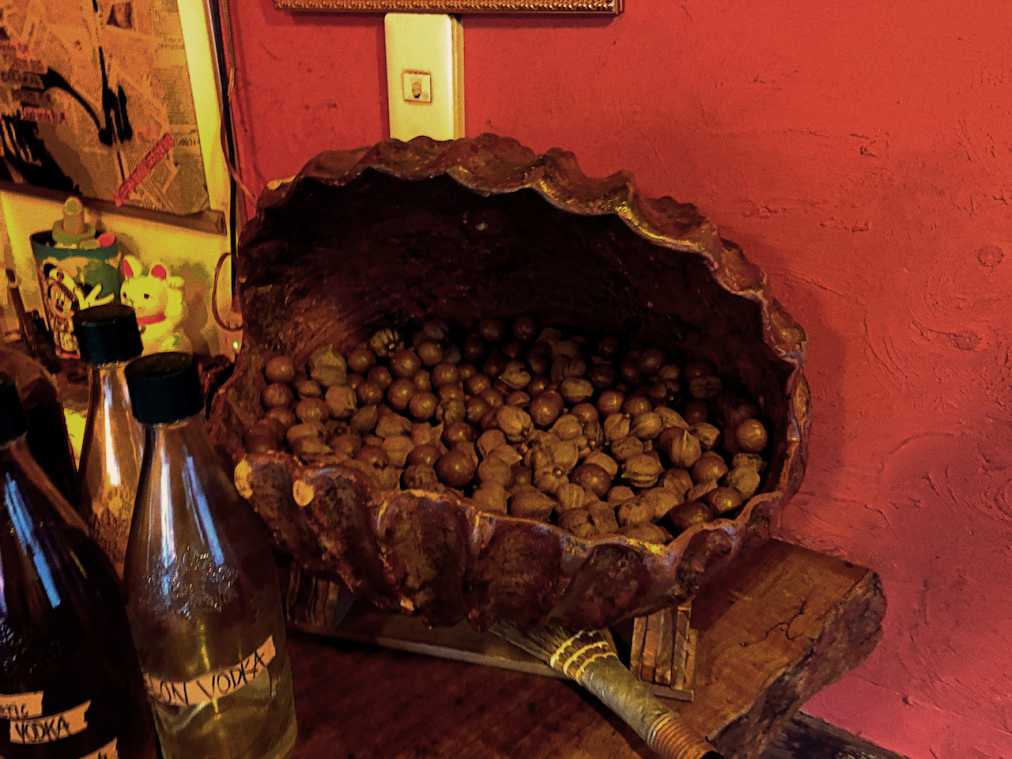 さぁ「TICO」の楽しみ方、上級編は…お通しでもある食べ放題のナッツを自分で割って、殻を床にポイッ!と捨てること!一見びっくりしますが、これが「TICO」のスタイルなのだそう。みるみるうちに床はお客さんたちの食べたナッツの殻で敷き詰められます。