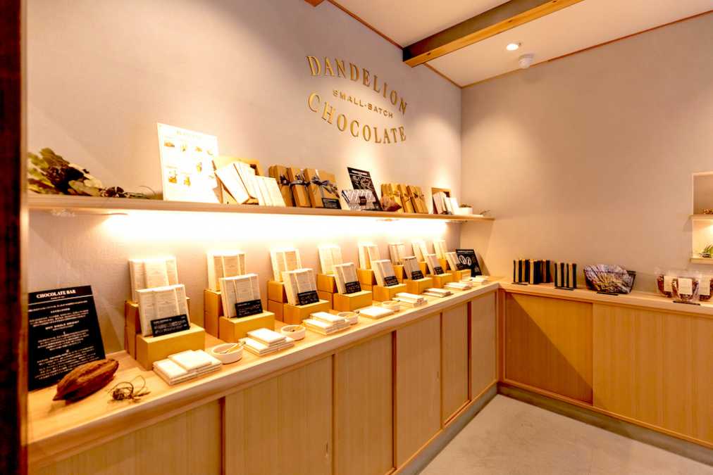 建物に一歩足を踏み入れると、「ダンデライオン・チョコレート」で作られたチョコレートが、展示品のようにディスプレイされています。