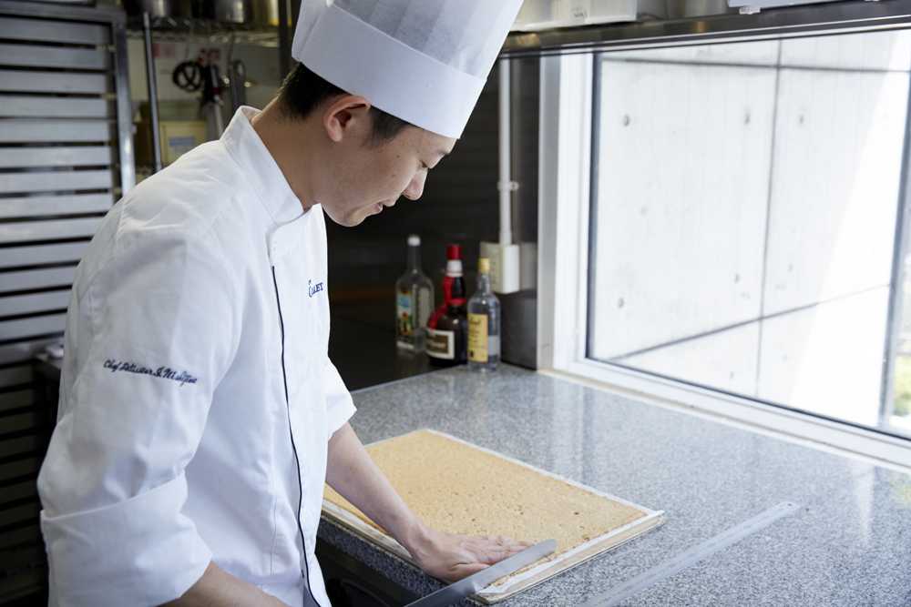 今回の移転リニューアルにあわせて、新しくシェフに就任したのは西嶋一力さん。九州生まれの西嶋シェフは、東京の「ノリエット」、フランス・リヨンの「パトリック・ロザ」など、名だたる店で経験を積んだあと、洋菓子の町・神戸の「Patisserie GREGORY COLLET」にやって来ました。