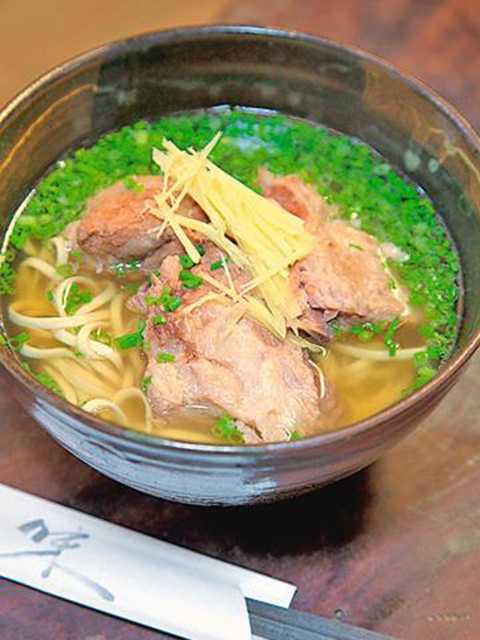 ショッピングや町歩きを楽しむ前に、まずは雰囲気たっぷりの古民家を利用した沖縄そばの店で腹ごしらえしましょう。人気はソーキ(スペアリブ)と三枚肉(バラ肉)、テビチ(豚足)の3種類の具材がのった豪華なスペシャルそば。カツオの風味が香る、味わい深く澄んだスープとコシのある麺は、一度食べたらクセになる味です。店内を吹き抜ける風も心地よく、のんびりとした時間を楽しめます。