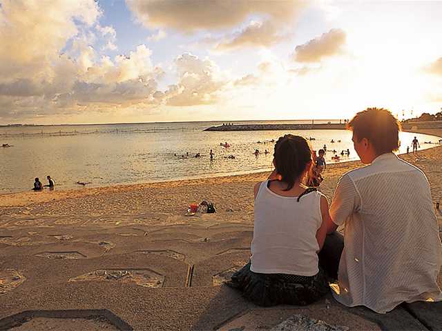 美浜アメリカンビレッジに隣接する夕日の名所は、買い物帰りに訪れるのがおすすめです。遊泳期間は4月から10月までと長いので、水着を持って訪れたいスポットです。サンセットタイムを待ちながらビーチ遊びを満喫するのもいいかも!