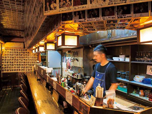 国際通りから脇道にそれた竜宮通りにある小料理店。昭和30年(1955)創業の老舗で、入口の赤提灯と歴史を感じさせる佇まいが印象的です。海ぶどうに島ラッキョウ、ミミガー、豆腐ようと定番の沖縄のおつまみも豊富。手間をかけた料理の数々は、お酒との相性も抜群。量り売りされる泡盛は43種あり、いろいろな味を試したくなる品揃えです。