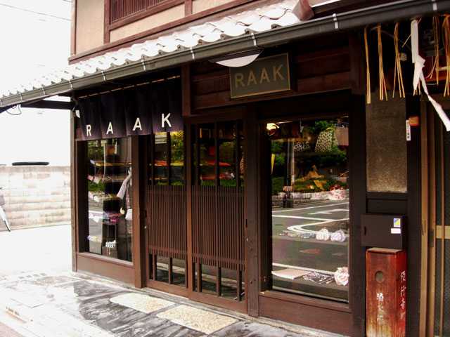 「RAAK」は、日本最古の綿布商「永楽屋」の現当主、14世細辻伊兵衛が立ち上げたブランドでガーゼ手ぬぐいの専門店です。京町家を改装した味わいある造りの本店は、ガーゼ手ぬぐいのほか風呂敷などの和小物もラインアップされ、伝統柄からカラフルなモダン柄など、たくさんの商品が並びます。