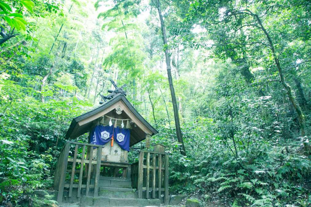 しばらく森を進むと、鏡の池が現れます。稲田姫命が飲料水とし、姿をお写しになった池と伝わり、神秘的な雰囲気です。