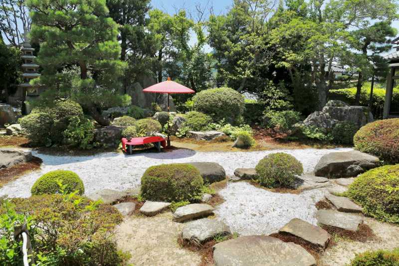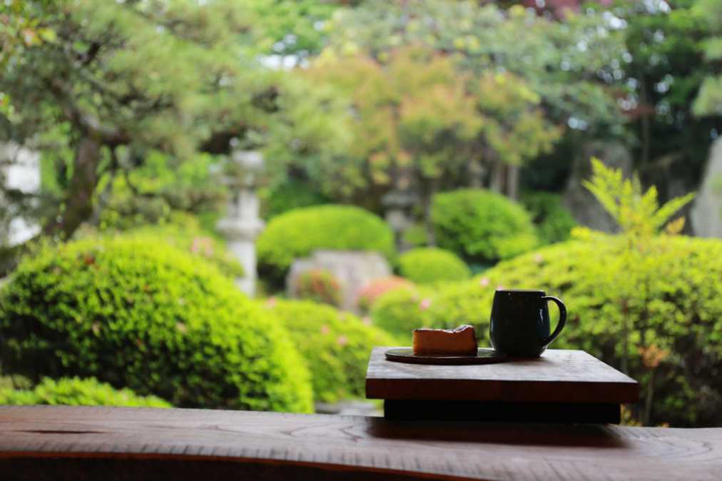 こちらの名物はなんといっても約800坪の枯山水庭園。建物はこの庭を囲むように立っていて、どの部屋からも庭園を望むことができます。美しく剪定された季節の木花を愛でながらゆっくりとカフェやランチを楽しめるのが魅力です。