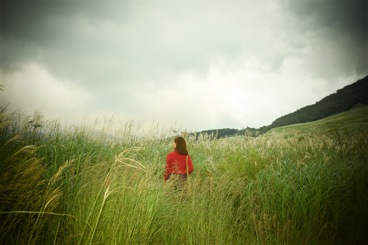D3500のスペシャルエフェクトモードを使って撮影してみると…。上はトイカメラ風の機能を使い、色の濃さと周辺減光量を調整し、ドラマチックな1枚に。下は「極彩色」をセレクトして、赤いニットやすすきの色を鮮やかに出しています。曇り空の中でも、印象的な写真が簡単に撮れました。