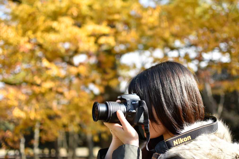 D5600にはポートレートや夜景など16種のシーンモードがあり、紅葉の設定も。また、タッチシャッターはピントを合わせたいところを指でタッチして、離すとシャッターがきれる機能。手前のモミジにピントを合わせて、後ろをぼかすとこんな素敵な1枚が簡単に撮れました。