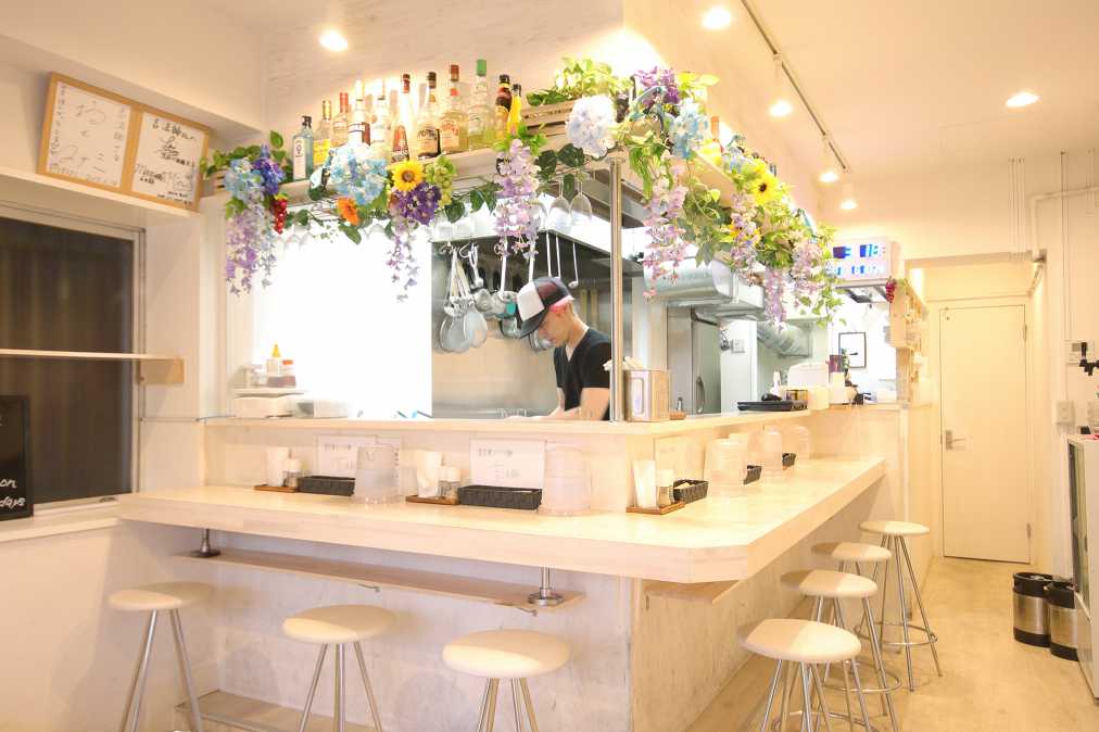 店内はL字型になったカウンター席とテーブル席が2つ。白で統一された内装は、シンプルで落ち着いた雰囲気です。清潔感のある店内で、女子1人でもふらっと訪れやすいのがうれしいですね。