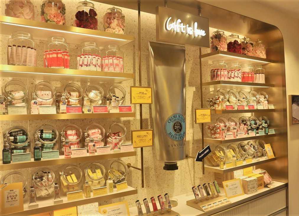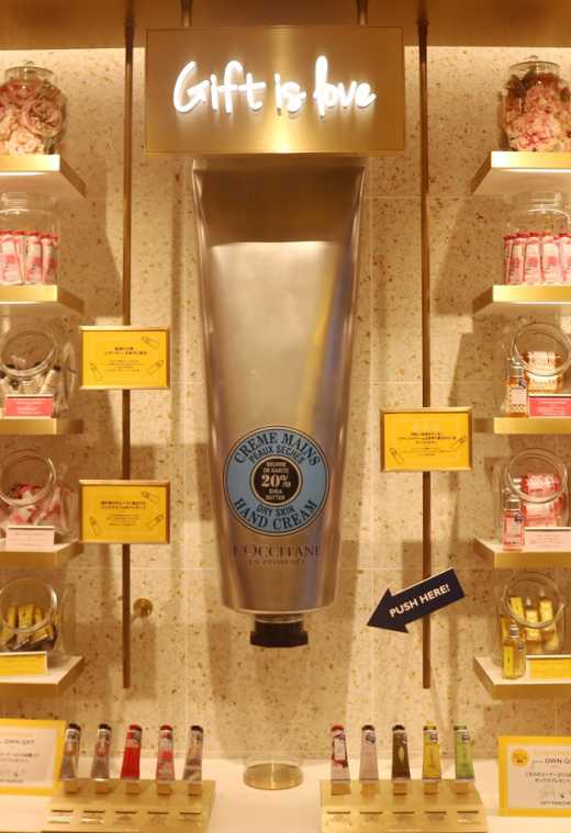 店内には、渋谷店限定の全長1mの巨大な“ロクシタン シア ハンドクリーム”!