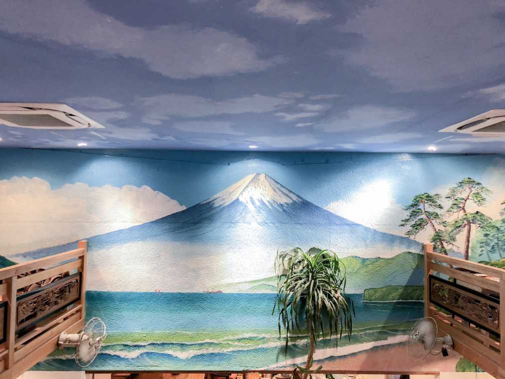 どの湯船からも見えるところにあるのが、堂々たる富士山の絵!そうそう、銭湯と言えば富士山のペンキ絵ですよね!
