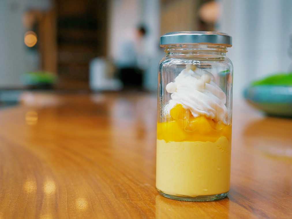 3層を一気にすくいあげ、パクリ!クリーミーなプリンと、驚くほど甘くジューシーなマンゴーの果肉がとろりと舌に触れます。そこへココナッツがほのかに香るまろやかな生クリームが加わり、危うく頬が落ちそうに…。