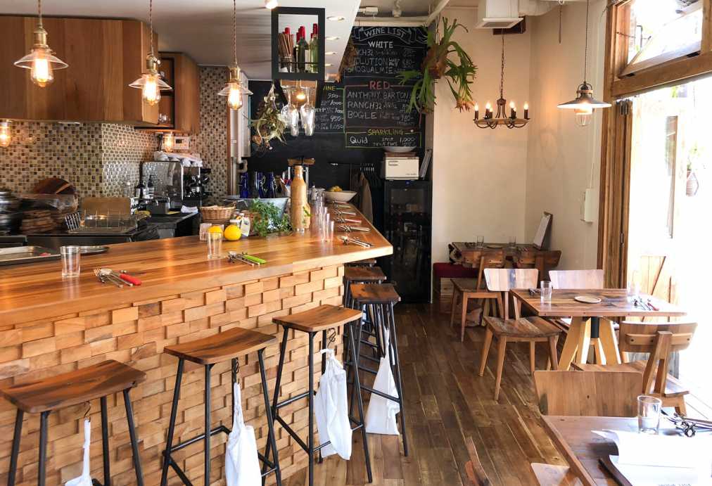 日中は大きな窓から自然光が差し込み開放的な雰囲気です。夜は温かな灯りがともり、カジュアルな雰囲気のなかでフレンチディナーを楽しめます。席はカウンターとテーブルをあわせて20席ほど。