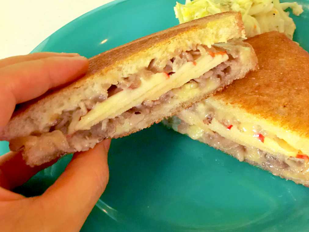 このグリルサンドはバターではなく、ココナッツオイルで焼いているのも味のポイント。シナモンのようなエキゾチックな香りがアクセントになり、ハマるおいしさです!