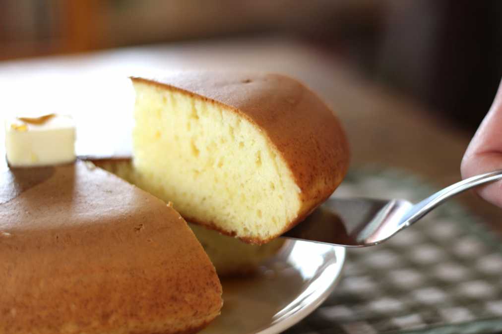 表面はさっくり、中はふんわりで、食感はふっかふか。口に含むとやさしい甘味と香ばしさがじんわり広がります。卵の風味が際立ったとてもシンプルな味わいなので、バターやメープルシロップがベストマッチ。たっぷりかけていただきましょう!