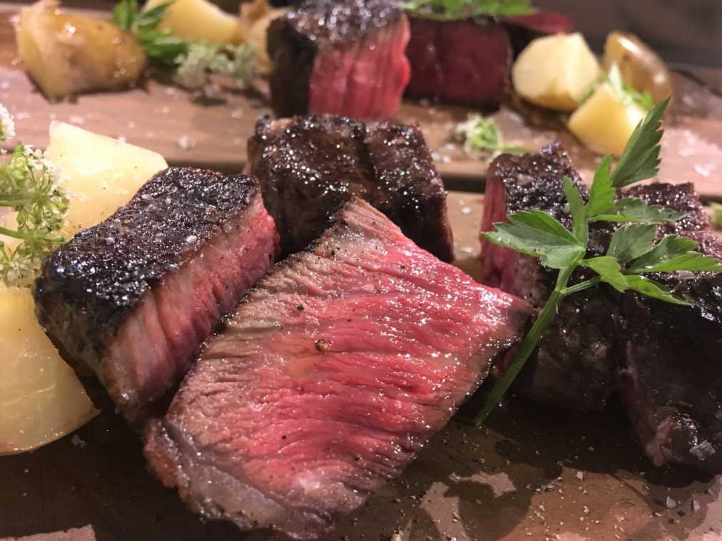 熟成香が魅力のステーキは、有機農法で造られた自然派ワインとあわせて。肉のうまみがさらに引き立ちます。
