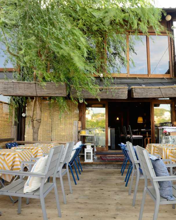 京都で3店舗を展開し、2018年春には大阪にも進出したビストロ「イカリヤ食堂」。海外修行を経験したシェフやソムリエが、フランスの郷土料理をはじめとするバラエティ豊かな料理と厳選ワインで迎えてくれます。夏はテーブルクロスやイスがパステル調の、明るい川床が人気です。