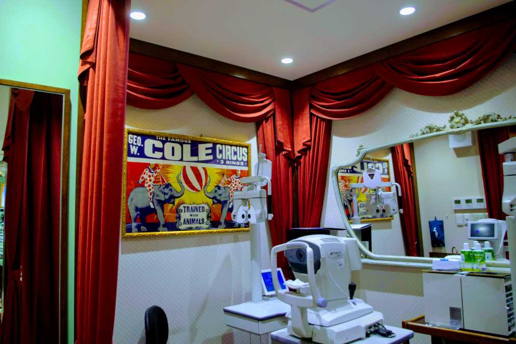視力測定スペースまでサーカスのテントをイメージさせる装飾が!