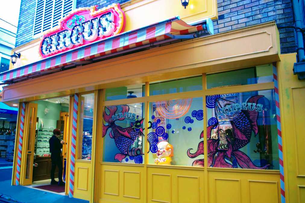 「ようこそ、サーカスへ!!」そんなかけ声が聞こえてきそうな、賑やかな店内。「サーカス」は「わくわくする、ドキドキする」をコンセプトにしたアイウェアショップで、サーカスのテントを思わせる工夫が詰まった空間が特徴です。