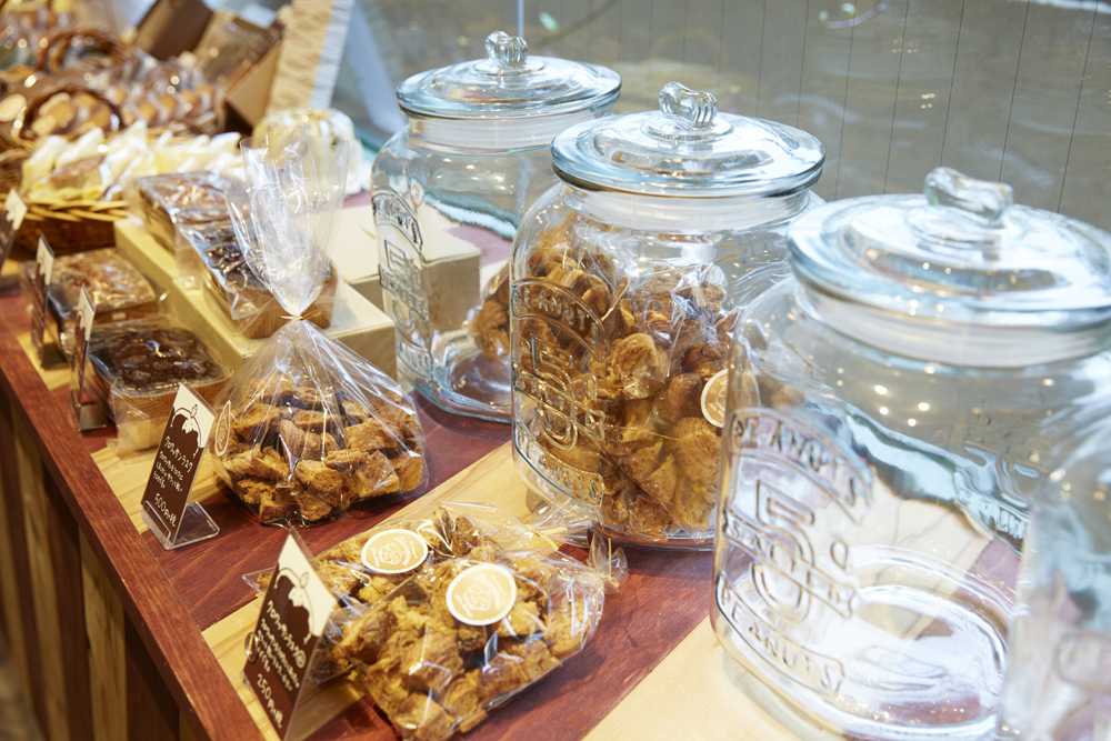「クロワッサンラスク」(250円、税別)や、本店でも大評判の「オレンジのクグロフ」(600円、税別)などの焼き菓子も充実しています。