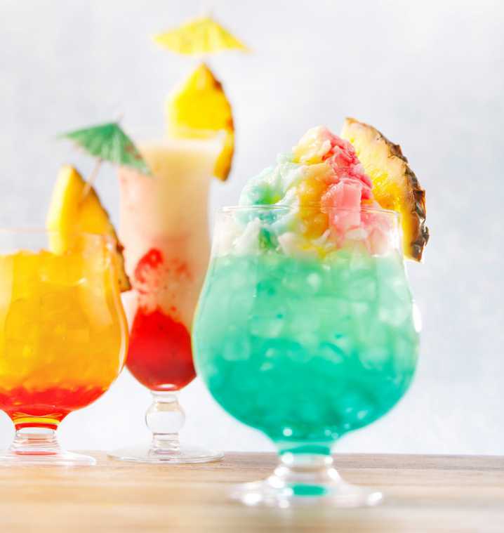 「ミルキーシェイブアイス」750円は、ミルキーなかき氷とさっぱりしたブルーハワイの味わいが楽しめる夏の限定ドリンク。見た目もトロピカルで夏らしい装い!ノンアルコールなのでお酒が飲めない人でも安心。