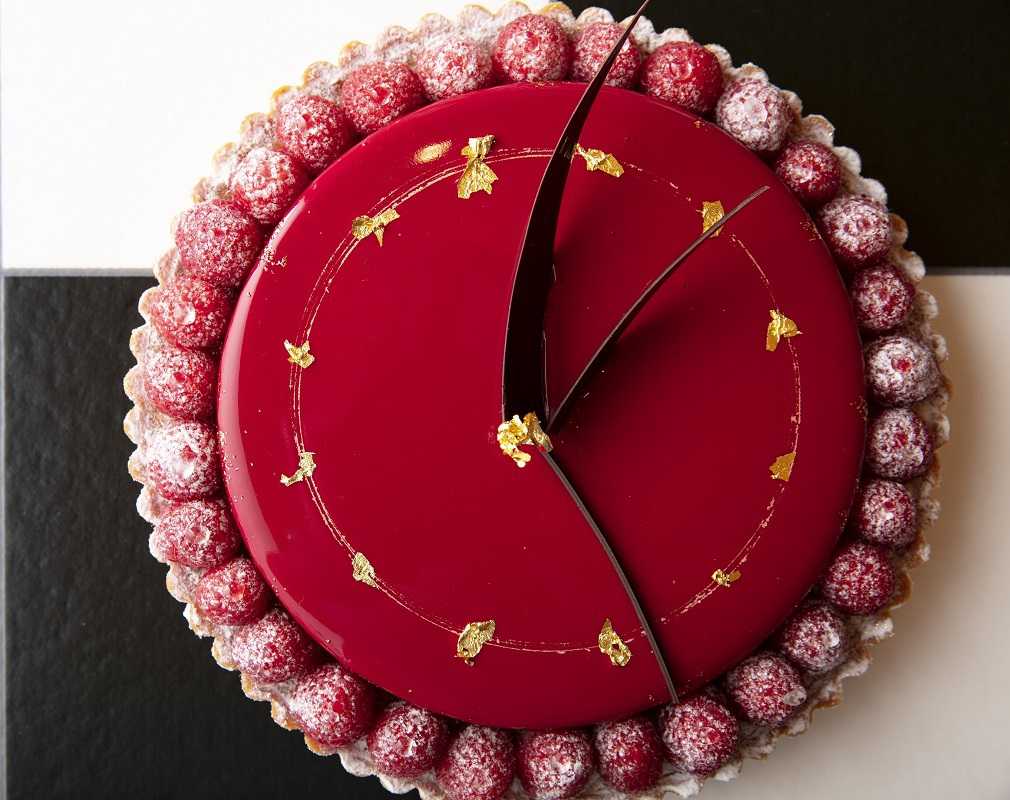 ひと口食べると、爽やかな甘さが広がる時計型タルト「狂った時間のままお茶会なの!?」は、高級チョコレート“ヴァローナ”を贅沢に使用。
