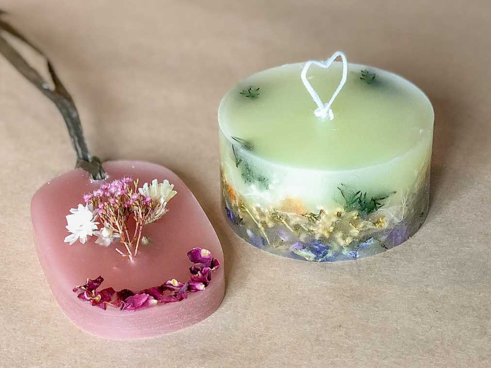 数ある体験コースの中から、今回は「miniボタニカルキャンドル&アロマワックスサシェコース」(4000円)を選択。キャンドルとサシェからどちらか1種類を2つ制作、または2種類を1つずつの計2つを作ることができます。
