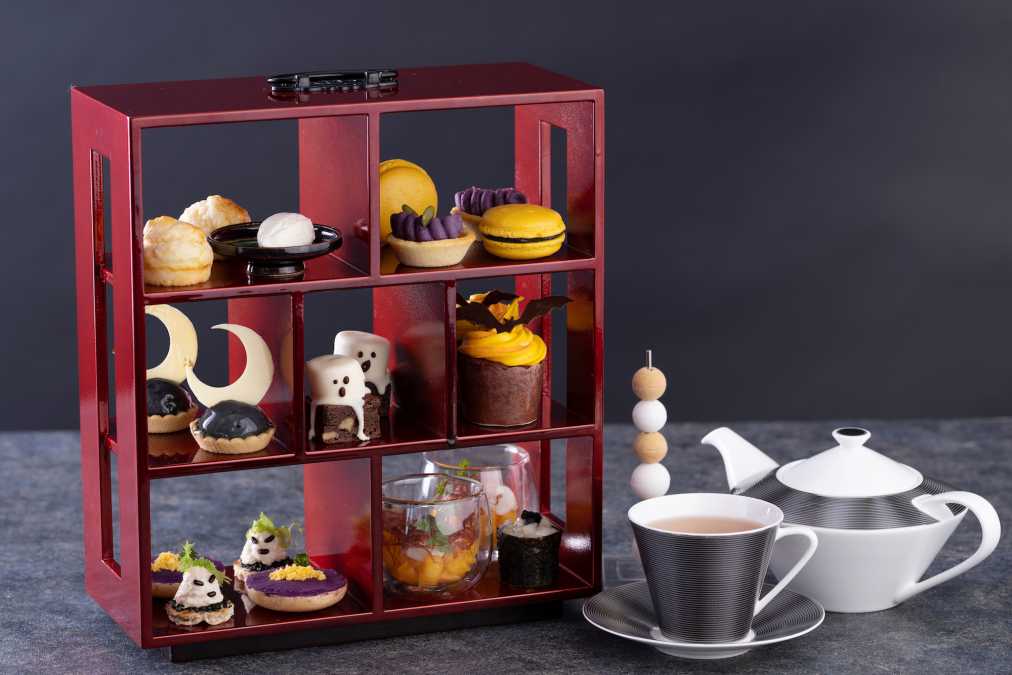 ほかにもスイーツビュッフェでも登場する「マシュマロゴースト on ブラウニー」など6種類のスイーツと、少し意地悪な表情のゴーストがのったセイボリー「ウッドファイヤーブレッドに乗ったチョウザメのモークのゴースト」など4種類のセイボリーという全10種類のアイテムの充実さがうれしいアフタヌーンティー。暮れゆく街並みを眼下に眺めながら優雅なひと時が楽しめます。