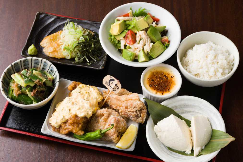 都内で大人気の鶏料理専門店「水炊き・焼き鳥 とりいちず新横浜店」からは、「とりいちずの贅沢おとな様御膳」1480円。秘伝の唐揚げ、自家製タルタルのチキン南蛮、鶏とアボカドなど、店の人気メニューが集合。