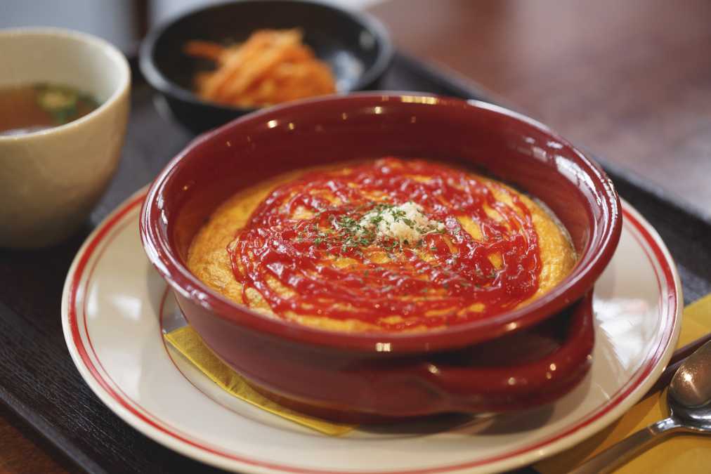 「焼きオムライス」(1000円)も、すみだモダン認定の人気メニューです。オーブンで焼き上げたアツアツの一品は、キッシュのような食べごたえのあるたまごに、ほんのりスパイシーなライスがマッチ。絶妙な香辛料がほどよく食欲をかき立て、ボリューミーながらもあっという間に完食してしまいました。