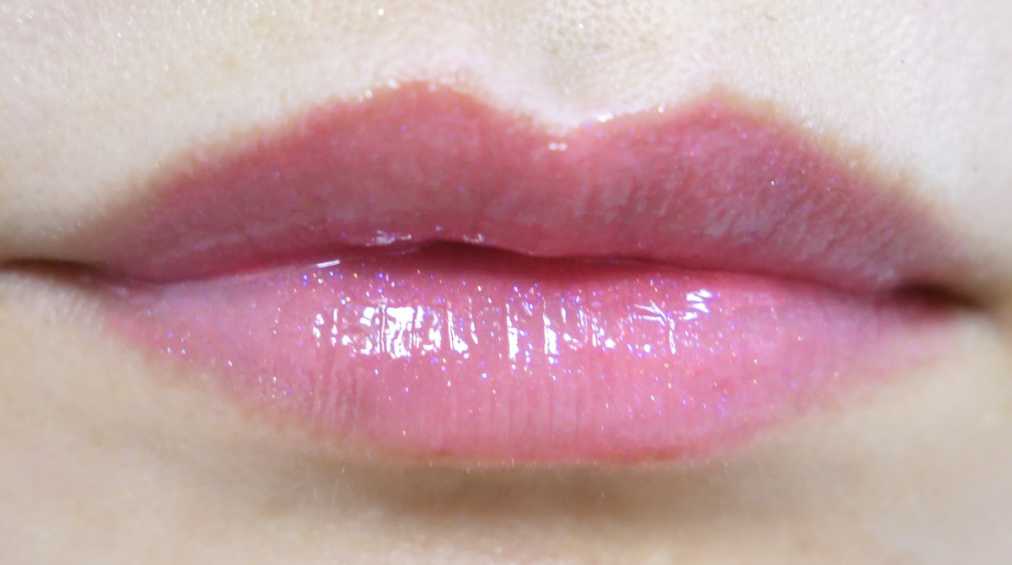 まずこちらで唇を塗るとこんな感じに。42番のフラワーはブルーラメを中心とした多色ラメがぎっしりと詰まった、発色のよいピンクリップ。明るくてパキっとしたステキな色ですよね。