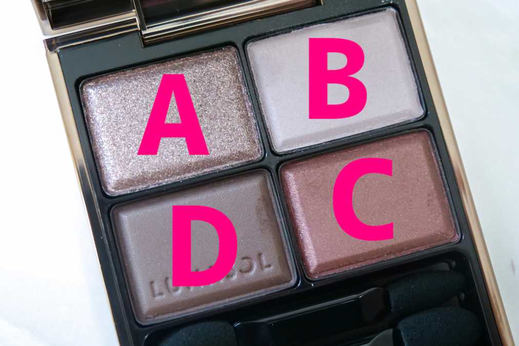 四色を重ねていくごとに、奥行きのある目元になります。ピンクっぽさ、パープルっぽさもありとても可愛い色づきに。