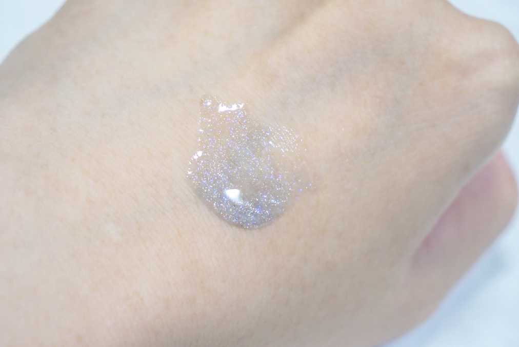 まず鮮やかなリップを塗って、その上から少量重ねてあげるとトーンが落ちてほんのりくすんだカラーに変わります。全体的にたっぷりと重ねてしまうと唇の血色感を消してしまうので、ほんのり重ねてあげると自然にオシャレな口元が作れます。細かいラメも入っています。