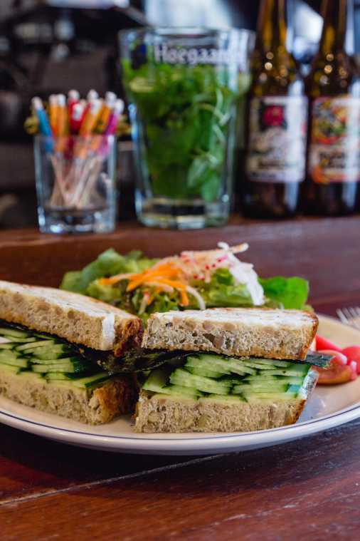 サンドイッチやハンバーガー、オープンサンドなど、お店オリジナルの「サンド」は5種類。たっぷりのキュウリと海苔を挟んだユニークな「CUCUMBER AND SEAWEED SANDWICH(キューカンバーアンドシーウィードサンド)」(800円)は、ゴマソースと醤油を加えたほんのり和風テイスト。雑穀パンでサンドすることで、しっかり滋味と歯ごたえを感じられるヘルシーなメニューです。