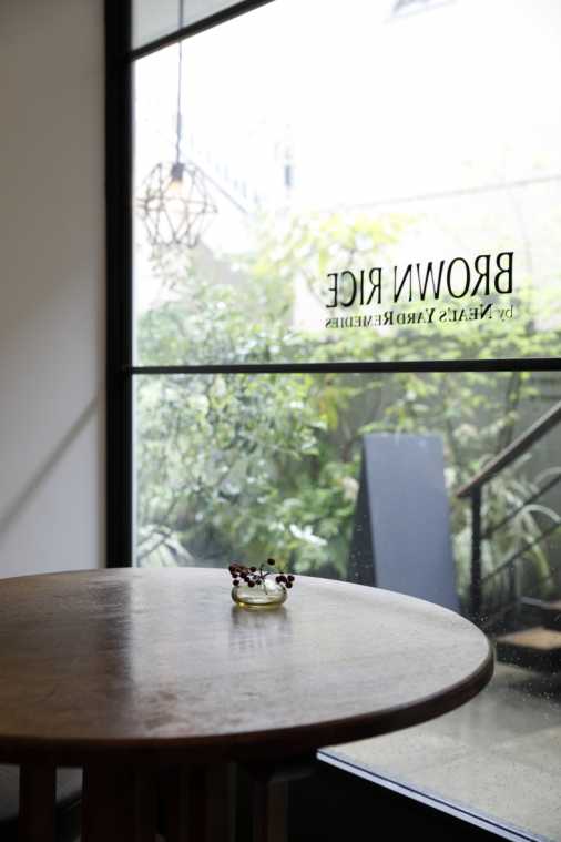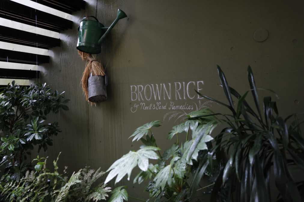 ニールズヤードが展開するレストラン「BROWN RICE by NEAL’S YARD REMEDIES(ブラウン ライス バイ ニールズヤード レメディーズ)」は、表参道駅近くのショップの敷地内にあります。エントランスを入ると都会の喧騒からは一転。みずみずしい植物たちがカフェの扉まで続きます。