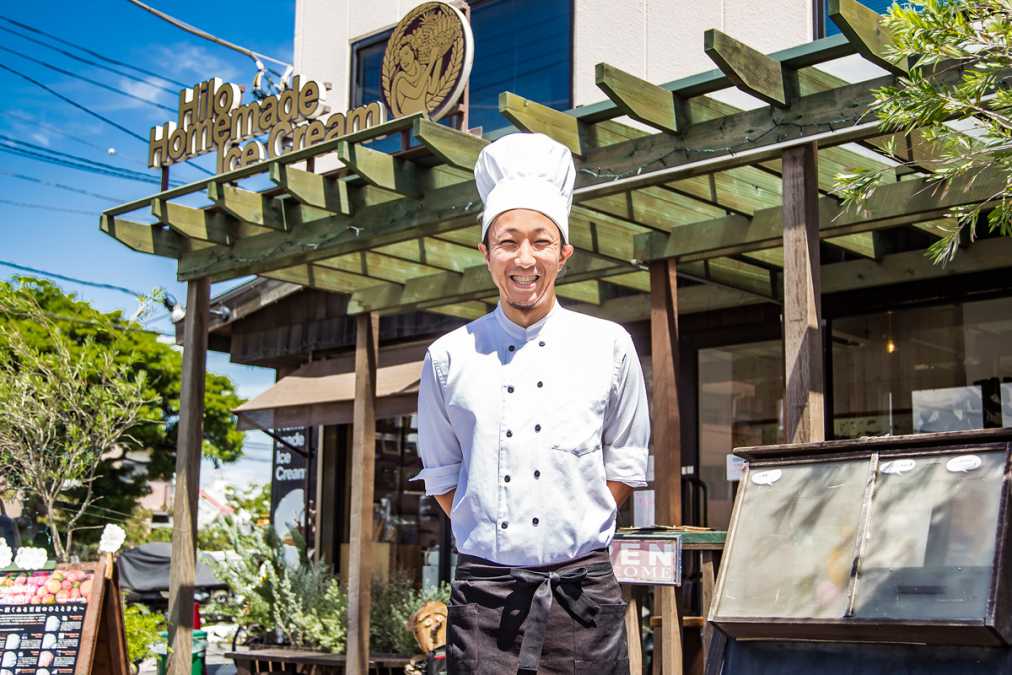「ヒロ ホームメイド アイス クリーム」のはじまりは、ハワイ島の沿岸都市・ヒロで日系アメリカ人夫婦が開いたアイスクリーム店でした。オーナーの永江仁さんはヒロで4代目と出会い、アイスクリーム製造に携わるように。その後、5代目として引き継ぎ、日本で開業したのは2006年のこと。ヒロとどことなく雰囲気が似ている、鵠沼海岸に工房を構えました。