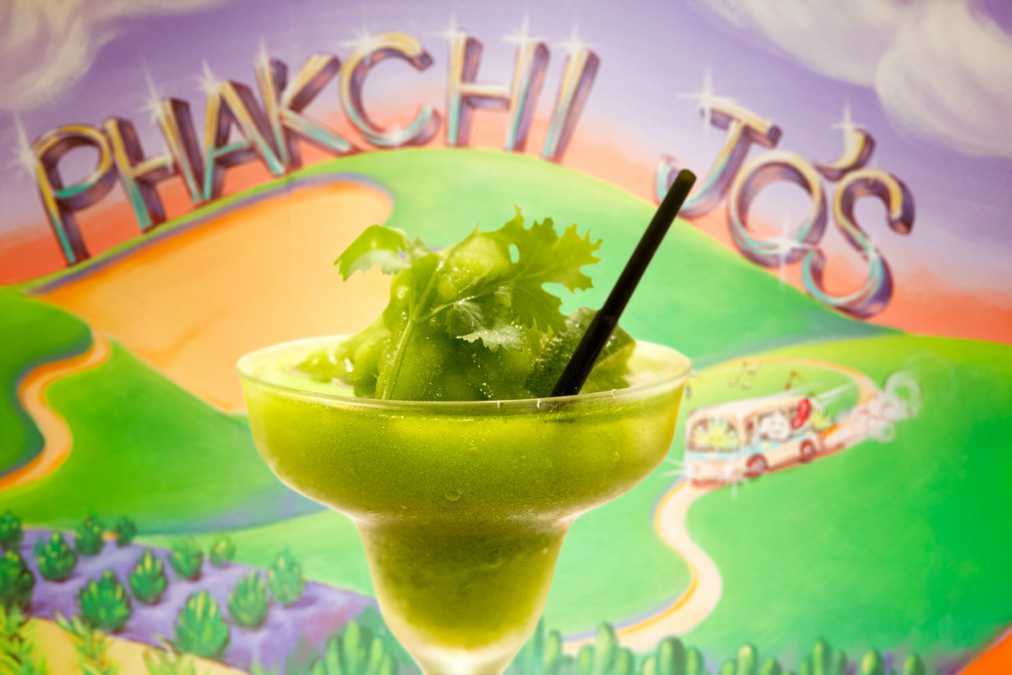 カクテルならぬ“パクテル”もおすすめ。こちらは「フローズンパクチーダイキリ」(950円)で、ラムをベースに、パクチーやマルガリータミックス、氷をミキサーでクラッシュして作ります。ほかに、モヒートやジントニック、マルガリータのパクチーバージョン、パクチー梅酒、パクチーサングリアも!