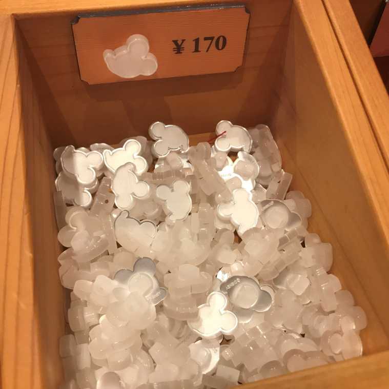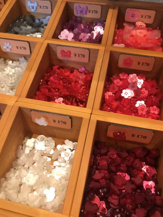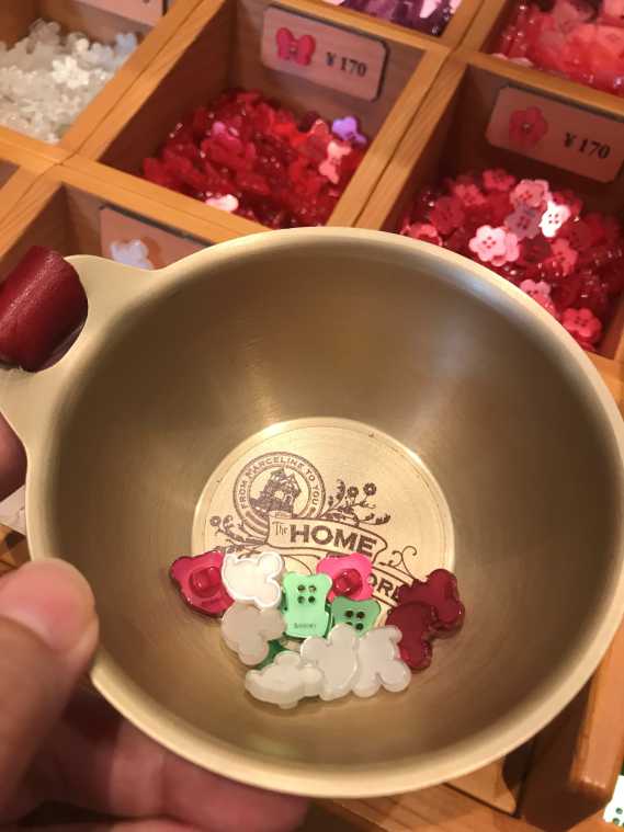 ミッキーシェイプなどのかわいいボタンが入った、ちいさな木箱が並ぶシチュエーションは見ただけでもハイテンションになっちゃいます。