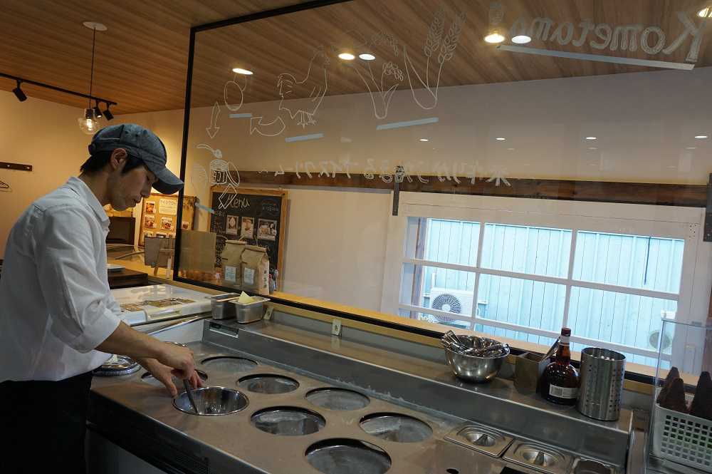 長崎県波佐見町の西の原にあるアイスクリーム専門店「氷窯アイス こめたま」。氷窯とは特注の製氷機で作ったボウルのようなもの。こだわりは氷窯だけではありません。原料のお米や卵までも自分たちで生産し、氷窯製法を用いてアイスを手づくりするというこだわりいっぱいのお店です。