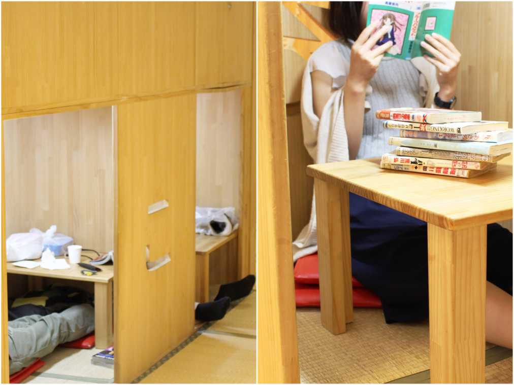 館内には、押入れをモチーフにした箱のようなスペースがいくつもあり、中に入って漫画を読むこともできます。ちょっとした個室のようなイメージで、居心地抜群!まわりを気にせず、思い思いのくつろぎ方で漫画に没頭できます。