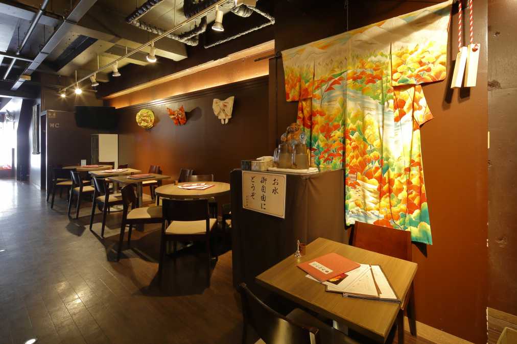 店内に入ると、色鮮やかな着物や帯をアレンジした装飾があちこちに。約30の席がありますが、7・8月はオープン直後から満席になることも。9月以降は予約もできるので、事前に席を確保してから訪れるのがおすすめですよ。
