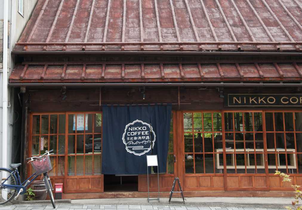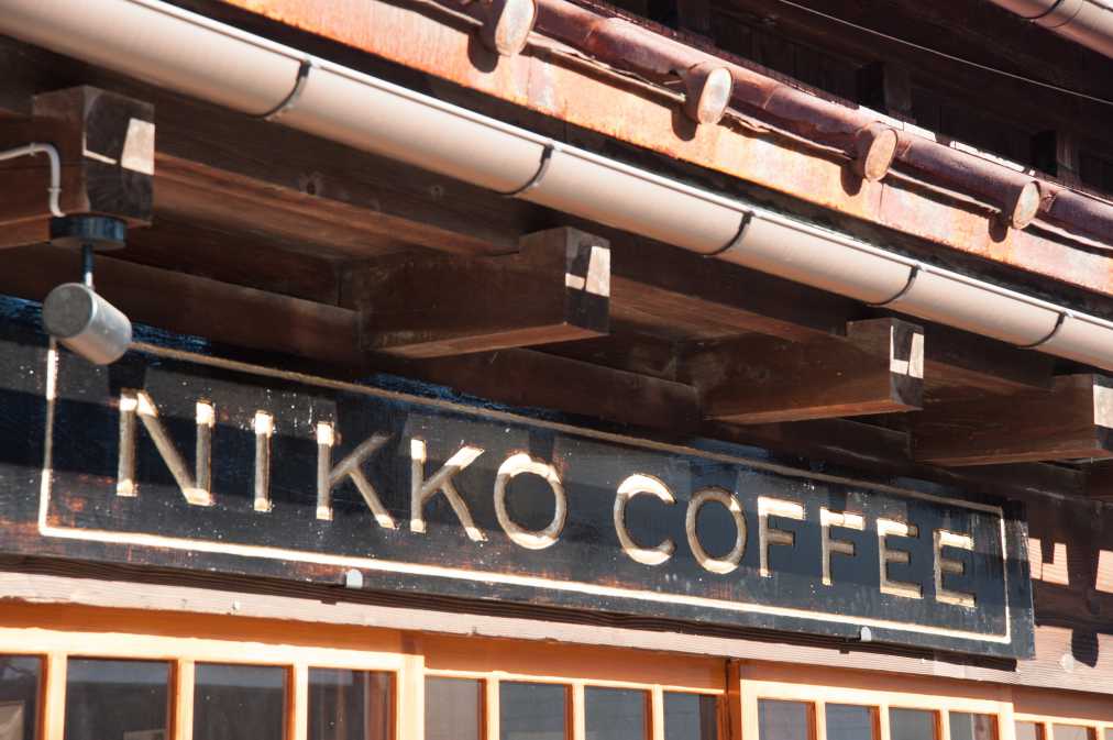 できる限りもとの姿を生かしたというレトロな外観に、NIKKO COFFEEと金色であしらわれた重厚な看板や藍色のモダンな暖簾がフィットして、なんともフォトジェニック!