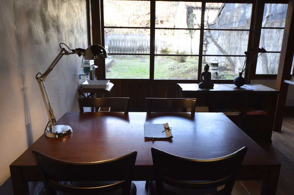 テーブルやイスのデザインもさまざまで、おばあちゃんの時代に使われていたような引き出しの付いた学習机も。お気に入りの場所を見つけるのも楽しいですね。
