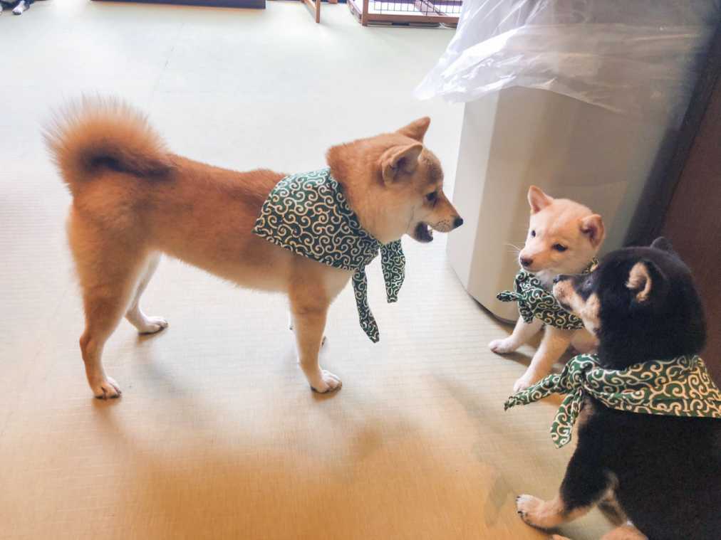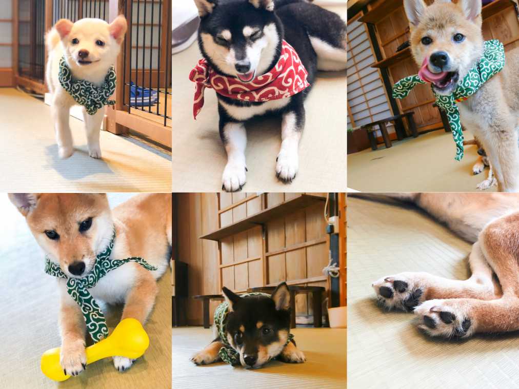それぞれが付けている唐草模様のバンダナには“豆柴”にちなんで「しょう豆」や「白百合豆」など、豆がついた名前が書かれています!名前を呼べば、反応してくれるかも!?