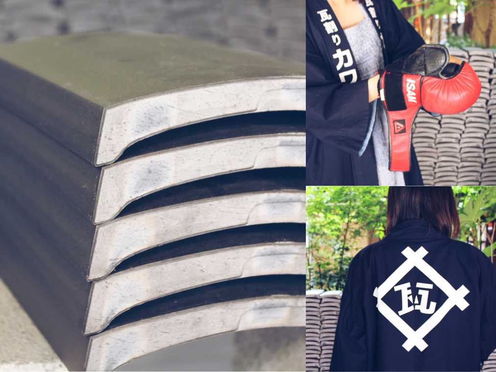 とはいいつつも、いざ積まれた瓦を目の前にすると、迫力ある佇まいに不安が高まります。が、そんな不安な方に朗報!「瓦割りカワラナ」では、グローブの貸し出しも行っているので、素手じゃなくても大丈夫。これでちょっとは勇気が湧いてきました!さらに、貸し出してくれるはんてんを着て、気分を高めれば準備完了。