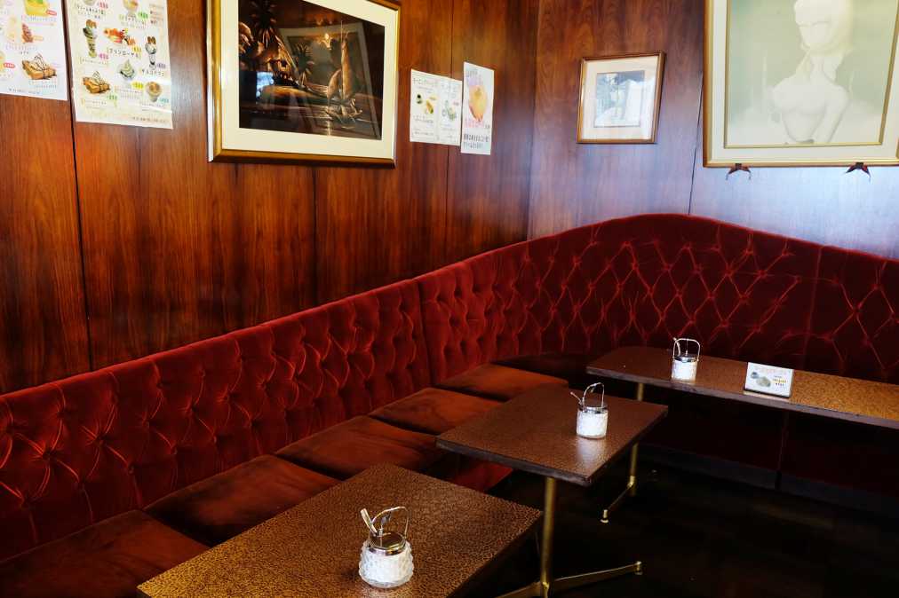 店内は、赤い革張りのソファのテーブル席から、ラウンジのようなソファ席など、まさしく「THE昭和の喫茶店」というような空間が広がります。昔からのお客様や若いカップル、カメラ片手に食事を楽しむ女性など、幅広い世代で賑わいを見せています。