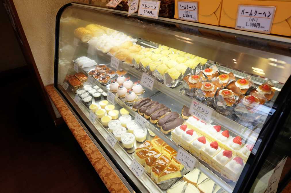 もともと「ボンボン」は洋菓子のお店で、30種類ほどの洋菓子がショーケースにずらりと並んでいます。季節限定のケーキから昔懐かしいケーキなどが、220円からという手頃な値段も人気のひとつ。一番人気は生クリームたっぷりの「マロン」(270円)だそうです。