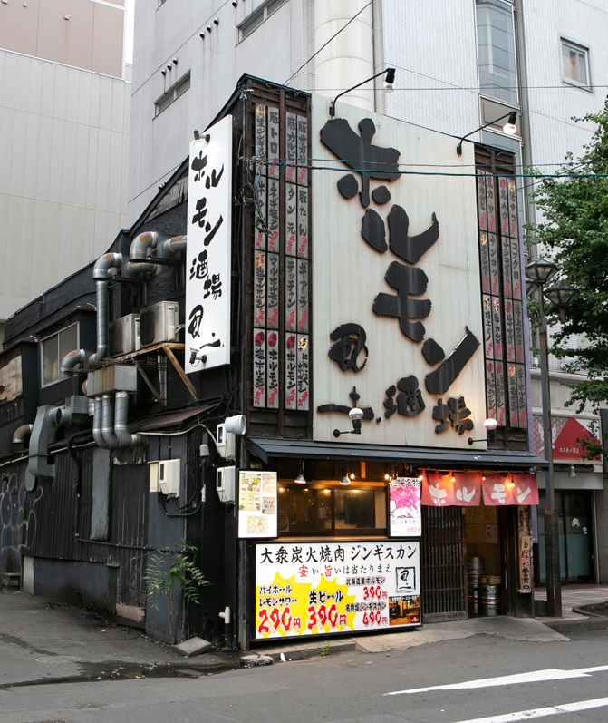 地元客はもちろん、観光客にも人気のホルモンとジンギスカンのお店。七輪を使って炭火で網焼きというのがこの店のスタイルです。一番人気の「塩ジンギスカン」690円(税別)をはじめ、札幌では珍しいレアで食べられるジンギスカンなど、臭みがないのが特徴で、羊肉が苦手という人でも食べられるといいます。ホルモンで人気なのはコラーゲンたっぷり「王様のマルホルモン」690円(税別)。ビールにもハイボール、サワーにも相性ばっちりです。